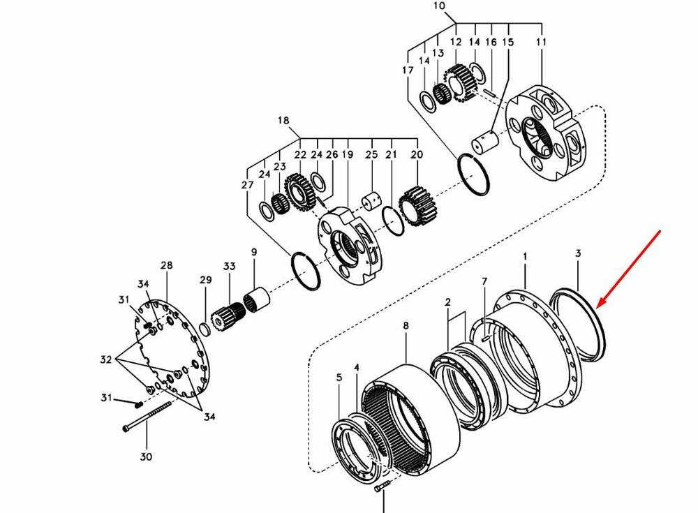 11.   [1] Корпус другої планетарної передачі редуктора ходу без шестерень VOLVO ec210