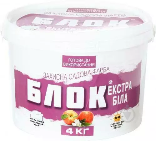 Призначена для фарбування стовбурів і скелетних гілок плодових, декоративних, ягідних дерев і чагарників з метою захисту від комах-шкідників, мохів, лишайників, грибкових і бактеріальних захворювань, гризунів, для замащування зрізів і "ран", підвищення зимостійкості запобігання сонячних опіків. Фарба може застосовуватися для захисного та декоративного покриття допоміжних садово-городніх та прибудинкових пристроїв: стовпів, підпірок для дерев, огорож, споруд, бордюрів, малих архітектурних форм. При правильному застосуванні покриття фарбою зберігається на молодих деревах 1 рік, на старих деревах та інших поверхнях - 2 роки.