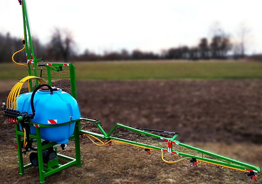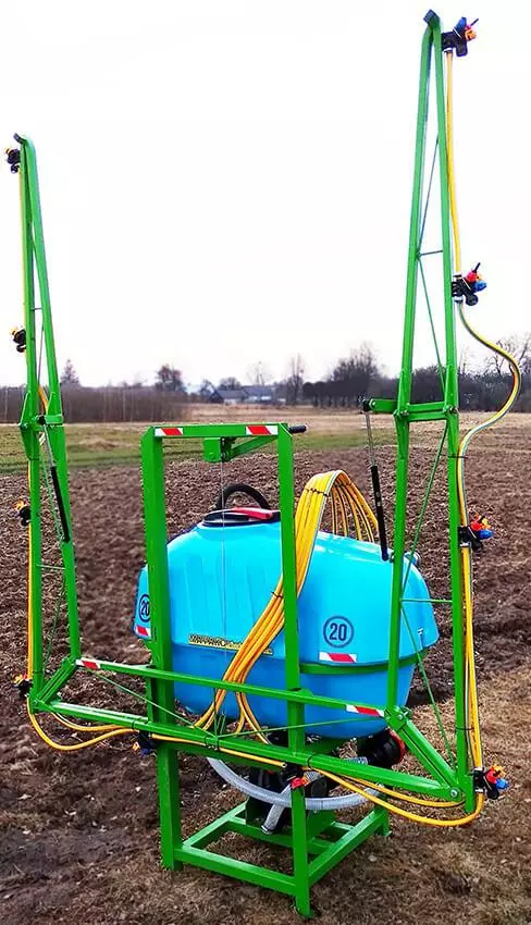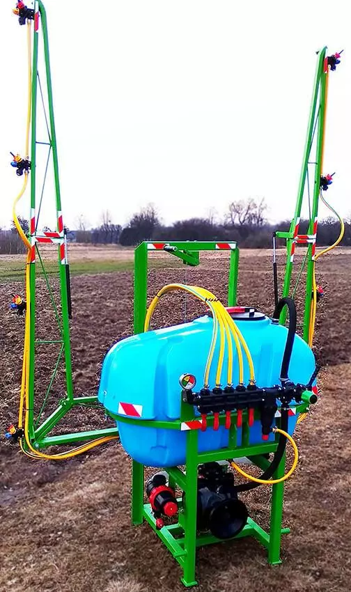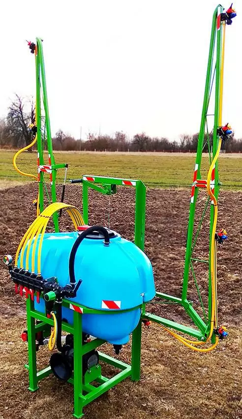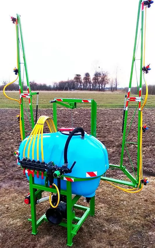 Обприскувачі для садів та виноградників повинні мати функціонал, який відрізнятиметься від обприскувачів для загального землеробства: мати компактні розміри і малий радіус розвороту, обробку в двох площинах. Штанги обприскувача можна зафіксувати в будь-якому положенні. Вони можуть розкладатися горизонтально і підніматися вертикально (дві бокові штанги). Кожна зі штанг має по дві форсунки, які забезпечують дрібнодисперсний туман з рівномірною витратою робочого розчину. Садовий обприскувач можна легко під'єднати до міні трактора.