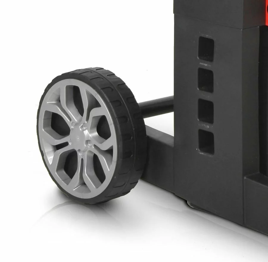 Подрібнювач має мобільну стійку. У ньому два великі, стійкі колеса зі спеціальним профілем і рукояткою. Таким чином, Hecht 625 BOX транспортується швидко і зручно до місця його використання і є безпечною і стабільною. Вузька конструкція займає мало місця для зберігання і, отже, особливо економить простір.
