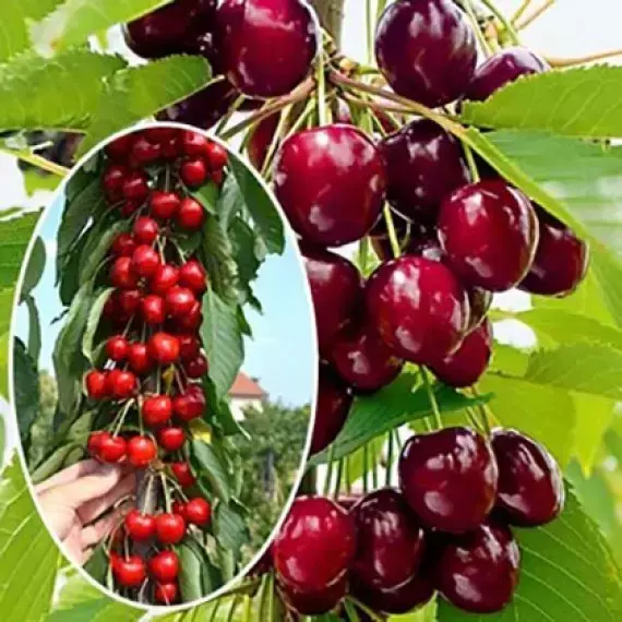 Колоновидна Вишня "Королева" - саджанці цього карликового сорту виростають від 1.5 до 2 м., висотою. Такі дерева можна вирощувати в контейнерах або вазонах.
