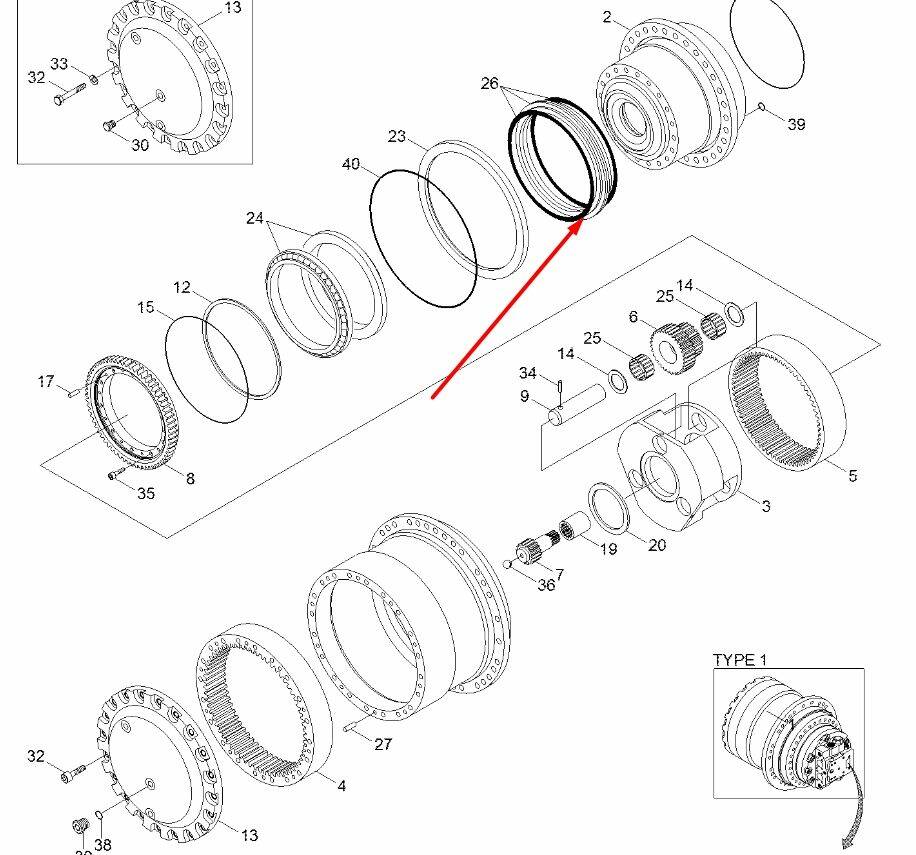 Ущільнення (даукон) редуктора ходу HYUNDAI R250 LC