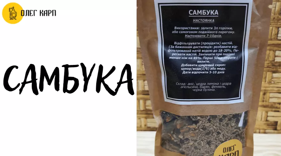 Склад: аніс, цедра лимона і цедра апельсина, бад'ян, фенхель, чорна бузина.