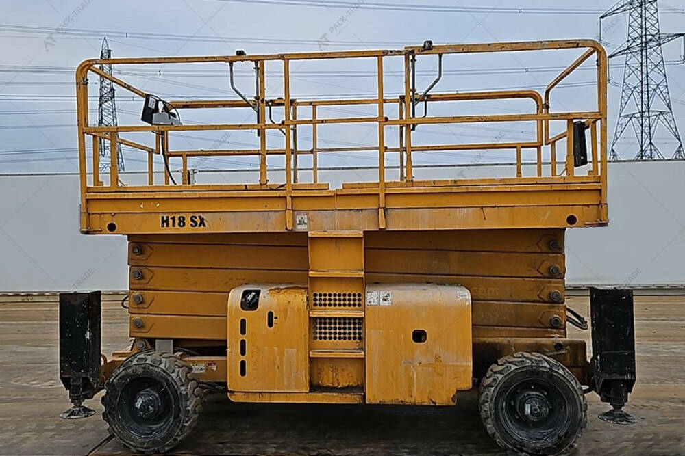 Ножичний підіймач б/в Haulotte H18SX 4x4, 2015 р/в. Висота підйому — 18 м. Вантажопідйомність — 500 кг.