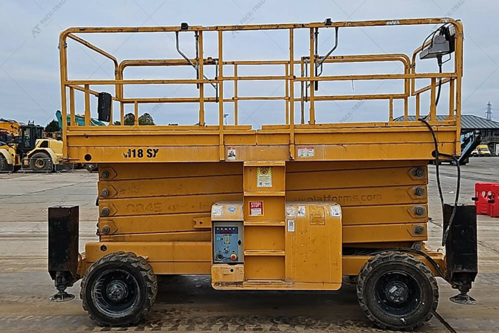 Ножичний підіймач б/в Haulotte H18SX 4x4, 2015 р/в. Висота підйому — 18 м. Вантажопідйомність — 500 кг.