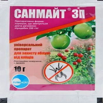Санмайт — один з найефективніших акарицидных препаратів контактної дії для захисту плодових дерев, ягідників та виноградників від різних кліщів, на будь-яких стадіях їх розвитку (яйце — личинка — німфа — доросла особина). Активна речовина акарицидів — пиридабен.