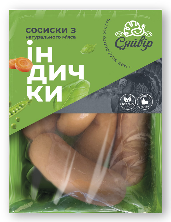 • Склад: м'ясо індиче 70 %, жир індичий 10 %, м'ясо механічної обвалки 10 %, шкірка індича 7 %