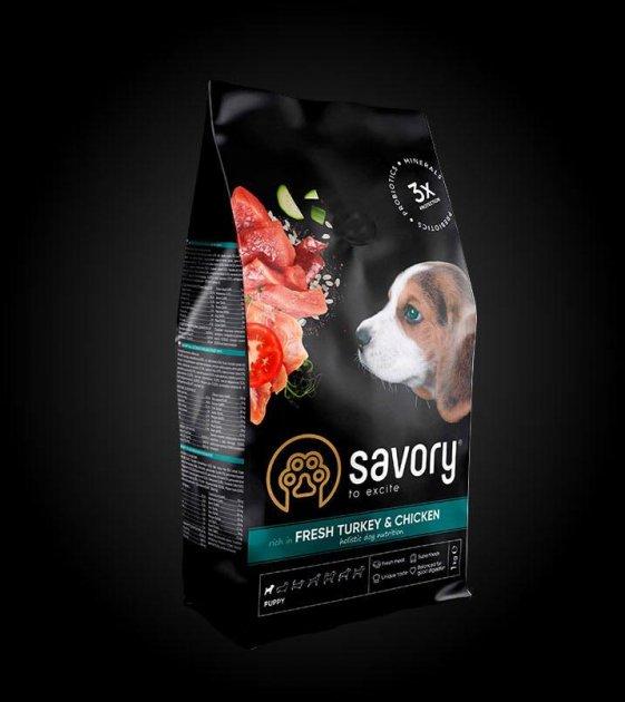 Сейворі Savory Puppy rich in Fresh Turkey & Chicken сухий корм для щенят (індичка та курка), 12 кг