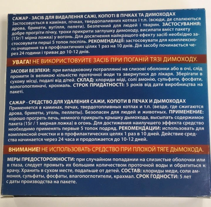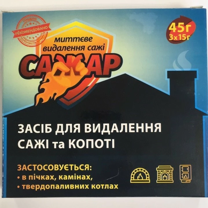Сажар 45г — средство для удаления сажи, копоти в печах и дымоходах.