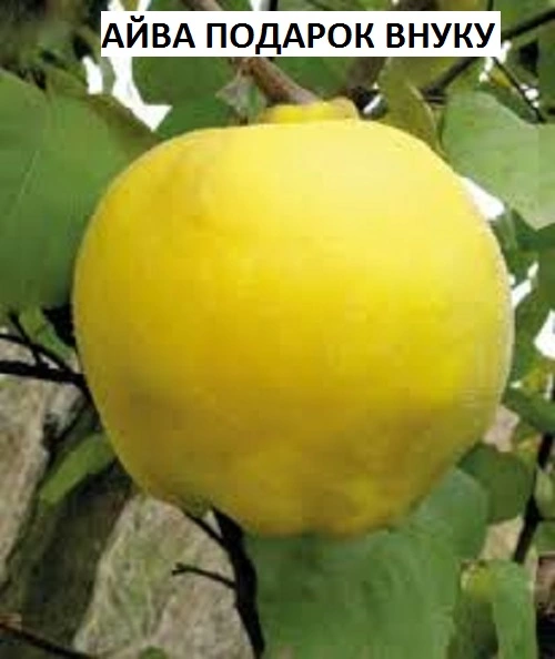 Айва Подарунок Онуку – самоплідний сорт середнього терміну дозрівання. Плоди великі, масою близько 300 г, яблукоподібної форми з гладкою шкіркою блискучою світло-жовтого кольору. Смак приємний, запашний. Дегустаційна оцінка 4,5 бали. Плоди дозрівають у середині вересня, добре зберігаються протягом 2-х місяців. Дерево середньоросле, скороплідне, зимостійкість та стійкість до хвороб висока. Плодоношення рясне, регулярне. Невибагливий сорт для вирощування цінується за високі товарні якості плодів та транспортабельність. Плоди універсального призначення.