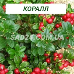 Брусниця Корал (Coralle) - це маленький вічно-зелений чагарник (до 30 см). Кущ має кулясту дуже декоративну форму з чудовими ягодами, що плодоносить два рази на рік. Цей сорт вважається одним із найврожайніших. Ягоди брусниці середнього розміру (вага 0,3-0,5 г) кисло-солодкого смаку. Плодоносить у серпні та другій половині вересня. На всіх саджанцях є плоди.