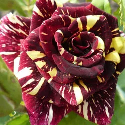 Роза чайно-гібридна Абра кадабра. Це одна з найбільш незвичайних троянд коли-небудь вирощених. Цвіте дуже яскраво та приголомшливо. Вся квітка покрита численними смужками та плямами різних відтінків від легких та сильних жовтих з рожевим та фіолетовим.