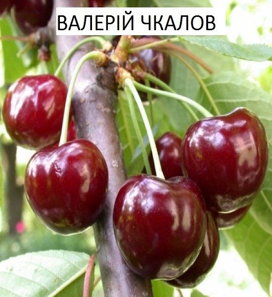 Плоди у сорту Валерій Чкалов досить великі - від 6 до 8 грамів, у вигляді широкого серця, із затупленою верхівкою. Колір шкірки - темно-червоний, що часто переходить у чорно-червоний. Майже такого ж кольору та сік. М'якуш темно-червоний, з помітними рожевими прожилками, соковитий, з деякою хрящовістю.