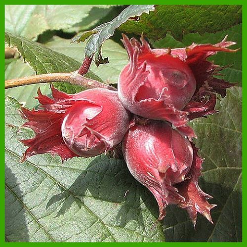 Фундук сорта «Варшавский» имеет оригинальную листву красного оттенка. В летний период она немного зеленеет, а осенью опять окрашивается в яркий цвет. Орехи этой разновидности по вкусовым качествам: нежные, сладковатые.