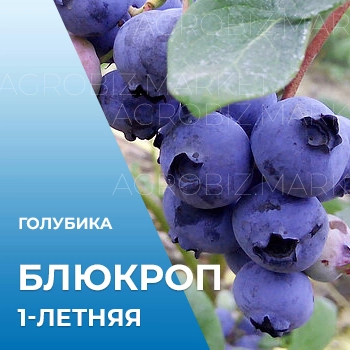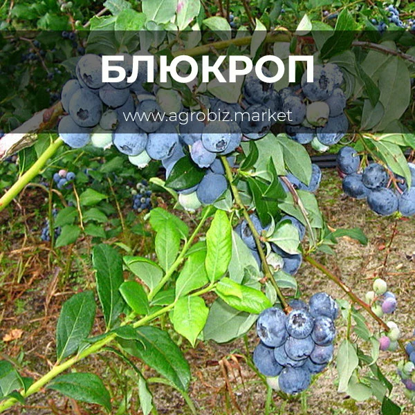 Рослина зростає у висоту 1,6? 2 м.. Приносить свої плоди чорниця «Блюкроп» на початку серпня. Її плоди великі – до 20 мм у діаметрі. На вигляд ягоди трохи плескаті, в синьому забарвленні зі світло-блакитним нальотом. Плоди лохини дуже смачні, вони ростуть зібрані в пензлі.