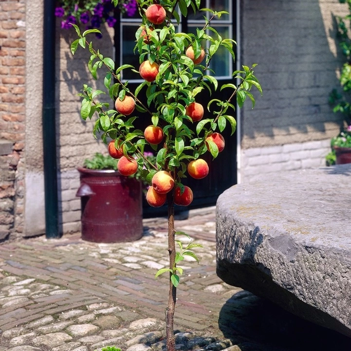 По сроку созревания относится к среднеранним форм. Плоды персика Медовый созревают уже в начале июля. Высота дерева не превышает 2 м. Крона густая. Плоды больших размеров. Вес каждого из них составляет 175-180 гр. Персики имеют округлую форму. Они желтые с красным румянцем. На кожуре есть опушки. Вкус приятный, сладкий. Косточка хорошо отделяется от мякоти.