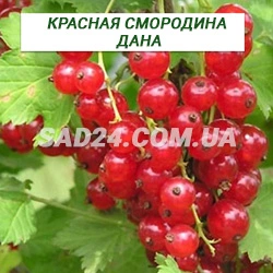 Червона смородина Дана - новий сорт пізнього терміну дозрівання. Сорт високоврожайний 150-200 ц/га або 3,3 кг із куща. Самоплідність висока. Ягода красива, світло-червона, одновимірна блискуча, досить велика 0,6-0,8 гр. Смак добрий, кисло-солодкий. Сума цукрів – 7,9%, кислотність – 2,5%, аскорбінова кислота – 47,5%, пектинові речовини – 7,6%. Пензлі довгі (8-11 см), щільні, містять близько 20 ягід. Сорт універсального призначення, підходить для вживання у сирому вигляді та у вигляді джемів та желе. Кущ потужний, трохи розлогий. Стійкість до борошнистої роси та антракнозу висока. Зимостійкість хороша.
