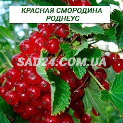 Червона смородина Роднеус - новий сорт пізнього терміну дозрівання – кінець липня, початок серпня. Висока врожайність до 10 кг з дорослого куща. Вважається одним із найкращих сортів червоної смородини у світі. Ягоди темно-червоні, округлої форми, блискучі, досить великі (діаметр до 1,5 см). Смак добрий, кисло-солодкий. Ягоди легко збираються із сухим відривом. Ягоди придатні для споживання у свіжому вигляді та різних видів заготовок. Грона довгі з численними ягодами. Транспортабельність та тривалість зберігання хороша. Підходить для механізованого збирання. Чагарник 1,5-2,5 м, сильнорослий, з вертикальними пагонами і потужною кореневою системою. Кущ плодоносить 20-25 років, при цьому найкращий урожай виходить із молодих кущів до 10 років. Стійкість до хвороб хороша. Сорт стійкий до американської борошнистої роси, цвілі ягід, ниркового кліща та махровості. Зимостійкість та посухостійкість хороша. Може рости на різних ґрунтах.