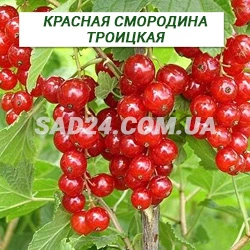Червона смородина Троїцька виведена в 1985 році в ІС УААН. Ягоди великі, масою від 0,9 до 1,3 г, округлої форми, інтенсивно-червоного кольору, зібрані в довгі кисті. М'якуш червоний, кисло-солодкого пікантного смаку, захований під еластичною, але міцною шкіркою. Кущ середньорослий, росте слаборозкидисто і компактно. Урожай дозріває у середні терміни, дозрівання одночасне. Рослина зимо-і посухостійка, стійка до грибних захворювань, через що може вирощуватися без застосування пестицидів та давати екологічно чистий урожай. Один дорослий кущ приносить близько 9 кг ягід.
