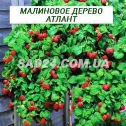 Малинове дерево Атлант - новий деревоподібний сорт з великими ягодами та високою врожайністю. Ремонтантний сорт малинового дерева характеризується середньорослими, сильними невисокими кущами до 1,5 м заввишки, з невеликою кількістю пагонів, здатними дати з одного саджанця до 3,5 кілограмів смачної великоплідної малини. Пагони з м'якими негострими шпильками, розташованими в нижній частині стебла. Ягоди витягнутої форми, середньою масою 6-9 грам, насичено червоного забарвлення, щільні, солодка м'якоть, відмінного десертного смаку. Врожайність з одного гектара близько 15 тонн. Відрізняється високою стійкістю до грибкових та бактеріальних захворювань, імунна до шкідників. Висока морозостійкість.