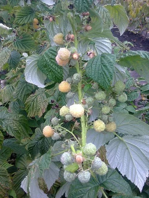 Опис сорту: малина Ранкова роса - ремонтантний сорт польської селекції, що виділяється жовто-жовтогарячими плодами. Щільні транспортабельні ягоди масою до 8 г. Дрібні кістянки зчеплені щільно, тому плоди здатні зберігати товарний вигляд тривалий час. Форма плодів округла або трохи витягнута. Смакові якості сорту відмінні. Це один із кращих жовтоплідних сортів малини. Дозріває наприкінці серпня та плодоносить до заморозків. Форма: напівчагарник з маленькими, ледь помітними шпильками. Під вагою врожаю кущ потребує опори. Кореневої порослі дає мало. Розмір: висота рослини досягає 1,5-1,8 метра, завширшки до 0,5 - 0,8 метра. Швидкість зростання/сила зростання: швидкість зростання пагонів малини Ранкова Роса дуже висока і досягає від метра до 1,2 метра на рік. Пагони: трав'янисті на першому році життя, зелені із сизим нальотом, тонкі, вкриті мініатюрними шпильками. На другий рік пагони деревніють і стають коричневими, засихають відразу після плодоношення. Необхідно проводити нормування пагонів у кущі, залишати 7-9 шт., інакше вони заважатимуть один одному. Листя: овальної форми, чергове, яскраво-зелене, зморшкувате. Квітки: на верхівках стебел і пазухах листя розташовуються білі квітки, близько 1 див у діаметрі, зібрані в невеликі суцвіття. Квіти цієї малини не відрізняються від решти представників сімейства, з'являються на кущах у травні-червні. Час цвітіння: з червня до липня. Плоди: плоди Ранків Роси округлі, сферичної форми, золотисто-жовті, щільні, кістянка дуже добре зчеплена. Смак солодкий із кислинкою, приємний. У посуху, при жарі цукристість губиться. Домінуючі нотки кислоти виправдані за рахунок високого вмісту вітаміну С, фруктових кислот за відносно невеликого відсотка цукру. Крім того, відіграє роль та догляд, клімат, ґрунт. Відношення до світла/інсоляція: віддає перевагу сонячним місцям, але може зростати і в затінку. Не страждає від сильних вітрів та посухи. Грунт: краще росте у родючому, вологому і добре дренованому грунті, не виносить близького залягання ґрунтових вод. Позитивні якості: ароматна, солодка, соковита і неймовірно смачна малина завжди сприймається нами як ласощі. Адже це ще й «криниця вітамінів», якими необхідно запасатися в сезон, насолоджуючись малиною у свіжому або в замороженому вигляді весь рік. Малину використовують для компотів, сиропів, киселю, соків. Дуже смачними виходять мармелад, джем, пастила з малиною. А яке дивовижне з дитинства всіма улюблене наше малинове варення. Також малину використовують при виготовленні настоянок, наливок, лікеру, вина, прохолодних напоїв, начинки для цукерок, квасу і т.д. У народній медицині використовують і гілочки, і листя, і плоди малини (у свіжому або сушеному вигляді), які мають цілющі властивості. Застосовується малина у кулінарії, народної медицині, а й у косметології. Загалом спеку переносить нормально, ягоди не дбають. Проте оптимальною температурою можна вважати до +30 С. Морозостійкість: Малина Ранкова Роса дуже стійка до морозів.