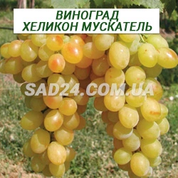 Виноград Хелікон мускатель - столовий сорт винограду, виведений в Угорщині. Сорт раннього терміну дозрівання, дозріває у середині серпня. Кущі із помірним зростанням, але високоврожайні. Кетяги великі, вагою 400-450 грамів. Ягоди середнього розміру 21x 17 мм, овальні, янтарного кольору, з легким мускатним ароматом.