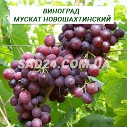 Виноград Мускат Новошахтинський - їдальня гібридна форма винограду дуже раннього терміну дозрівання. Квітка двостатева. Кетяг великий масою 500 г. Ягода велика, масою 7-10 г, округла, червоно-фіолетового кольору. Смак гармонійний із мускатним ароматом. Урожай довго зберігається на кущах без втрати смакових якостей. Кущі сильнорослі, визрівання пагонів гарне. Стійкість до мілдью, оідіуму 3 бали.