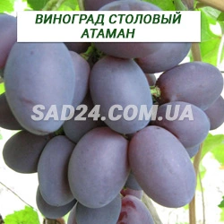 Отаман – гібридна форма винограду аматорської селекції Середнього або середньо-пізнього терміну дозрівання, 130-145 днів. Кущі великої сили зросту. Квітка двостатева. Пагони визрівають добре. Кетяги великі циліндро-конічні іноді лопатеві (довжина 25-30 см, ширина 12-15 см), середньої щільності. Середня маса грона 600-800 г, окремі до 1,2 кг. Ягоди великі і дуже великі (довжина 32-35 мм, ширина 23-25 мм, середньою масою 12-16 г), подовжено-овальні, червоно-фіолетові або темно-фіолетові на сонці, з помірним восковим на восковому. Шкірка щільна. М'якуш м'ясисто соковитий. Смак приємний, гармонійний. Цукровість соку ягід 16-20 г/100см3, кислотність 6-8 г/дм3. Плодоносних пагонів 50-65%, коефіцієнт плодоношення 0,9-1,1. Навантаження на кущ 55-60 очок. Обрізка лоз плодоношення на 8-10 очок. Морозостійкість Атамана до 24°С, вимагає укриття на зиму. Стійкість до грибних хвороб середня.