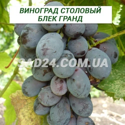 Блек Гранд – їдальня гібридна форма винограду середнього терміну дозрівання, припадає на кінець серпня. Кущі великої сили росту, зі своєрідним звисаючим листям. Квітка обох статей Грона великі, циліндро-конічної або конічної форми, середньопухкі або пухкі, вагою 600-1000 г., ягода велика, дуже красива, нагадує форму крапельки, від темно синього до чорного кольору. Вага ягоди 8-10 грам, Смак приємний гармонійний з характерним післясмаком. Шкірка щільна, м'якоть м'ясисто-соковита. Має високу стійкість до мілдью, стійкість до оідіуму середня, морозостійкість до -28°С.
