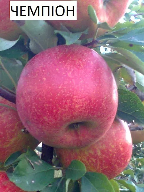 Чемпіон — ранньозимовий сорт яблуні чеської селекції, виведений у 1970 році на Дослідній станції в Головоусах (Чехія) у процесі гібридизації двох сортів — Голден Делішес x Ренет помаранчевий Коксу. Особливу популярність сорт завоював серед споживачів на західному ринку (Польща, Німеччина) та у східній частині континенту. Нині Польща залишається головним експортером плодів яблуні Чемпіон до країн Європи. Варто зазначити, що на європейському ринку вартість цих яблук є відносно високою. Але споживачів приваблює своєрідний смак плодів та їх гарне яскраве забарвлення. Поєднання високої врожайності яблуні Чемпіон з її високою вартістю на ринку і простотою виробництва дозволяє стати їй ідеальним сортом для комерційного вирощування. Також широкого поширення сорт отримав на Україні (у степовій, лісостеповій зонах та Південному Поліссі), де проводили його первинне випробування. Насамперед, ця яблуня перспективна для західної частини Степу, Лісостепу та Передкарпаття. Дерева слаборослі, крона компактного розміру, овальної форми, середньої загущеності. До початку періоду плодоношення зростання йде досить швидко, після чого сповільнюється. Також зростання слабшає в роки рясного плодоношення, у цьому випадку для його стимулювання застосовується спеціальне обрізання крони. Основні гілки середньорозвинені, при відходженні від стовбура утворюють кут 50—70 градусів. Бруньки мають високу збудливість, здатність до пагоноутворення помірна. Плодоношення змішаного типу - кільчатки, плодові прутики, списа. Цвітіння яблунь багате, дружне, відбувається у середні терміни. Пилок має середній або вищий за середній рівень життєздатності (від 32 до 60%). У процесі вільного запилення починається від 18 до 31% плодів. Оскільки цей сорт частково самозапильний, з метою підвищення врожайності рекомендується висаджувати поблизу його дерев яблуні-запилювачі. Найкращими серед них є сорти Алкмене, Айдаред, Алва, Лобо, Джеймс Грив, Флоріна, Теремок, Гала, Спартан, Пілот, Пірос, Пінова та Пріам. Зовнішній вигляд плодів сорту Чемпіон відповідає його назві: яблука великого розміру (середня вага одного плода дорівнює 160 - 200 грамів), практично всі одномірні, правильної форми - округло-овальної. Шкірка суха, дуже тонка, але досить щільна та еластична. У період знімної зрілості основне забарвлення плодів зеленувато-жовте, покривне забарвлення виражений на значній поверхні яблука у формі світлого оранжево-червоного розмито-смугастого рум'янцю. Також відомі клони Чемпіона: Чемпіон Арно (покривне забарвлення займає більшу частину поверхні на шкірці у бруньковій варіації) і Чемпіон Рено (солодшого смаку, на вигляд — практично повністю червоні). Нерідко на шкірці плода можна помітити жовто-сірі пробкові чечевички. М'якуш світло-кремового відтінку, середньої щільності. Яблука дуже соковиті, ароматні, відмінного кисло-солодкого смаку (4,5 - 4,7 бала за дегустаційною 5-бальною шкалою). Насамперед плоди використовують для вживання у свіжому вигляді, але для переробки вони також непогані. Клон Чемпіон Рено Період знімної стиглості припадає зазвичай на другу половину вересня (в умовах лісостеної зони та Південного Полісся), у кліматичних умовах Польщі врожай збирають трохи згодом — на початку жовтня. На молодих яблунях плоди міцно утримуються. У поодиноких випадках, через кіль