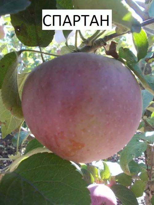 Сорт Спартан виведено 1926 канадськими селекціонерами для отримання плодів у промислових масштабах. Донедавна існувала хибна думка, що в походження цієї яблуні задіяли два сорти: Ньютаун Піппін (Newtown Pippin) і Макінтош. Однак із приходом генетичних експертиз з'ясувалося, що Пепін Ньютаун відношення до цього сорту не має. Дерево Зростання середнє, помірне. Крона – округла. Центральний провідник ствола зазвичай має сильний ухил. Листя невеликого розміру (зустрічаються і середнього, але рідше), темно-зеленого кольору, шкірясті та блискучі; практично круглої форми, з кінчиком, що часто закручується. Поверхня листа зморшкувата з пилчастими краями. Пагони сорту Спартан темно-вишневого кольору, складаються з безлічі колін, найчастіше мають сильне опушення. Зазвичай плодоношення концентрується на кільчатках.Бруньки конічної форми, коричневі та притиснуті. У відкритий ґрунт висаджуються дворічні саджанці. Плодоношення настає через п'ять років. Яблуня відрізняється рясним цвітінням. Розмір – середній. Світло-жовте забарвлення з насичено-червоним рум'янцем. Найчастіше, сизий восковий наліт надає плоду фіолетового відливу. Форма може бути як округлою, так і конічною. Вершина плоду з невеликою ребристістю. Чим ближче до центру крони, тим коротше і товще плодоніжка. Серцевина насіння звичайної темно-коричневої цибулинної форми. М'якуш яблука яскраво-білий, хрумкий, соковитий. Смак солодкий, без характерних домішок кислинки. Шкірка щільна і товста, однак це не применшує смакових якостей, а, навпаки, гармонійно поєднується з ними. Урожай Плоди визрівають практично одночасно наприкінці вересня. Якість яблук вищого ґатунку становить близько 80%. При регулярному поливі вага плода може досягати близько 150 г. Незважаючи на таку значну вагу, завдяки міцній плодоніжці, плоди впевнено триматися на гілках до повного дозрівання. Правильні умови зберігання (льох чи холодильні камери) дозволяють витримати товарний вигляд та смакові якості до березня – квітня місяця. Грунт і стійкість до хвороб Яблуня Спартан має середній ступінь зимостійкості. Стійкість до борошнистої роси, багатьох грибкових захворювань, парші та бактеріального раку вища за середню. При висадці бажано віддавати переваги суглинистим, повітропроникним, вологоємним ґрунтам. Дерева сорту Спартан вимагають особливо частої обрізки та формування крони. Від цього багато в чому залежить врожайність. Використання Сорт універсальний. Яблука вживають як у свіжому вигляді, так і для консервування. Відмінно підходить спартан для приготування сухофруктів. А пектин, що міститься у великій кількості в плодах яблуні, сприяє збереженню природного кольору і аромату при приготуванні мусів, джемів і желе. Висока врожайність, скороплідність, невибагливість, стійкість до багатьох захворювань, тривалий термін зберігання яблук, хороша транспортабельність, відмінні смакові якості.