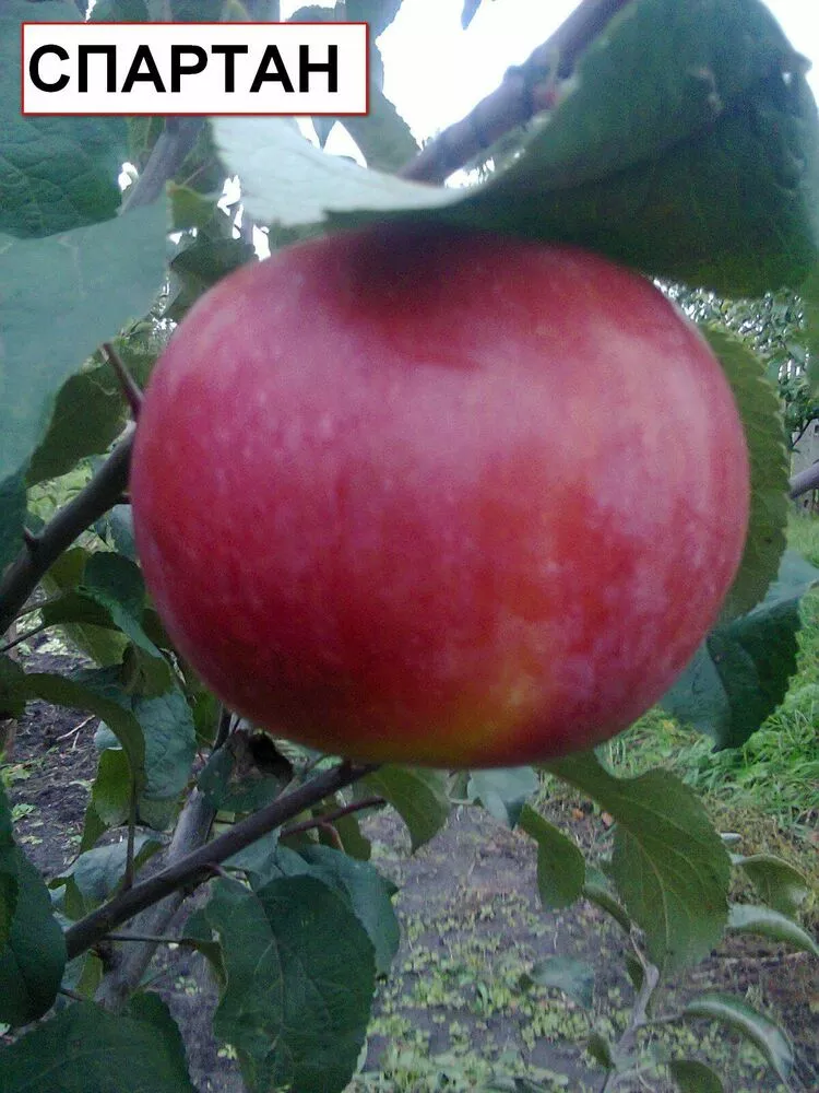 Сорт Спартан виведено 1926 канадськими селекціонерами для отримання плодів у промислових масштабах. Донедавна існувала хибна думка, що в походження цієї яблуні задіяли два сорти: Ньютаун Піппін (Newtown Pippin) і Макінтош. Однак із приходом генетичних експертиз з'ясувалося, що Пепін Ньютаун відношення до цього сорту не має. Зростання середнє, помірне. Крона – округла. Центральний провідник ствола зазвичай має сильний ухил. Листя невеликого розміру (зустрічаються і середнього, але рідше), темно-зеленого кольору, шкірясті та блискучі; практично круглої форми, з кінчиком, що часто закручується. Поверхня листа зморшкувата з пилчастими краями. Пагони сорту Спартан темно-вишневого кольору, складаються з безлічі колін, найчастіше мають сильне опушення. Зазвичай плодоношення концентрується на кільчатках. Бруньки конічної форми, коричневі та притиснуті. Яблуня відрізняється рясним цвітінням. Розмір плодів середній. Світло-жовте забарвлення з насичено-червоним рум'янцем. Найчастіше, сизий восковий наліт надає плоду фіолетового відливу. Форма може бути як округлою, так і конічною. Вершина плоду з невеликою ребристістю. Чим ближче до центру крони, тим коротше і товще плодоніжка. Серцевина насіння звичайної темно-коричневої цибулинної форми. М'якуш яблука яскраво-білий, хрумкий, соковитий. Смак солодкий, без характерних домішок кислинки. Шкірка щільна і товста, однак це не применшує смакових якостей, а, навпаки, гармонійно поєднується з ними. Плоди визрівають практично одночасно наприкінці вересня. Якість яблук вищого ґатунку становить близько 80%. При регулярному поливі вага плода може досягати близько 150 г. Незважаючи на таку значну вагу, завдяки міцній плодоніжці, плоди впевнено триматися на гілках до повного дозрівання. Правильні умови зберігання (льох чи холодильні камери) дозволяють витримати товарний вигляд та смакові якості до березня – квітня місяця. Яблуня Спартан має середній ступінь зимостійкості. Стійкість до борошнистої роси, багатьох грибкових захворювань, парші та бактеріального раку вища за середню. При висадці бажано віддавати переваги суглинистим, повітропроникним, вологоємним ґрунтам. Дерева сорту Спартан вимагають особливо частого обрізання та формування крони. Від цього багато в чому залежить врожайність. Яблука вживають як у свіжому вигляді, так і для консервування. Відмінно підходить спартан для приготування сухофруктів. А пектин, що міститься у великій кількості в плодах яблуні, сприяє збереженню природного кольору і аромату при приготуванні мусів, джемів і желе. Висока врожайність, скороплідність, невибагливість, стійкість до багатьох захворювань, тривалий термін зберігання яблук, хороша транспортабельність, відмінні смакові якості.