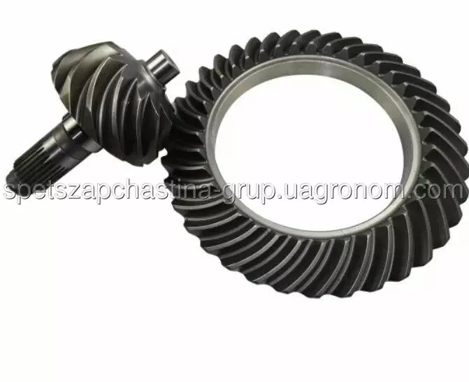 29070000451 / 2050900107 головна гіпойдна пара редуктора моста на навантажувач SDLG LG958, LG956 - конічна пара зі спіральним зубом на передній міст фронтального навантажувача. Гіпойдна пара є частиною планетарного механізму редуктора моста. З протилежного боку від шестерні хвостовик має евольвентні шліци.