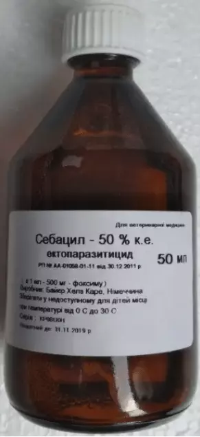 Для знищення коростяних кліщів (Psoroptes, Sarcoptes, Chorioptes), кусають і сисних вошей, рунцов овечих, бліх, а також личинок м'ясної мухи. Себаціл® 50% характеризується високою акарицидной та інсектицидної ефективністю одночасно з низькою токсичністю для ссавців. ВРХ (нелактуючі), вівці, свині.