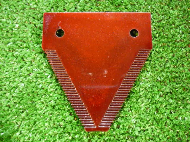 Властивості: сталева пластина трапецеподібної форми з гострими зазубреними бічними гранями, виготовлена ??з легованої сталі, загартована для підвищення опору зламу і збільшення зносостійкості. В основі зроблені два кріпильних отвори. Сегмент з'єднується зі спинкою коси заклепками або різьбовим з'єднанням.