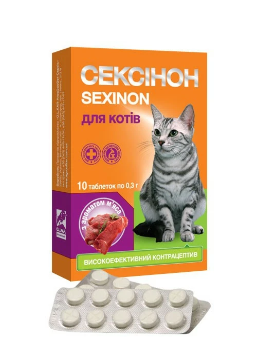 Сексінон для кішок упаковка №10 таблеток зі смаком м'яса