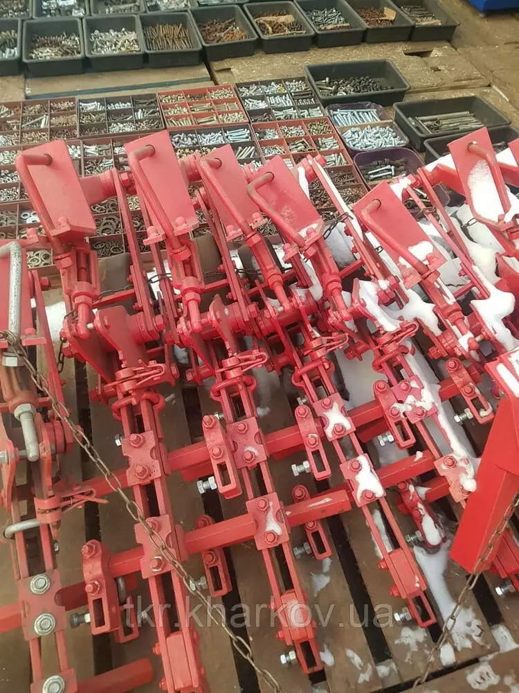 Секція КРН 46.040 у зборі з колесом і лапами — застосовується на культиваторі КРН-5,6. Слугує для міжрядного оброблення та підживлення рядових культур, висіяних із міжряджанням 70 см. Основні деталі: кронштейни, скоби, колесо