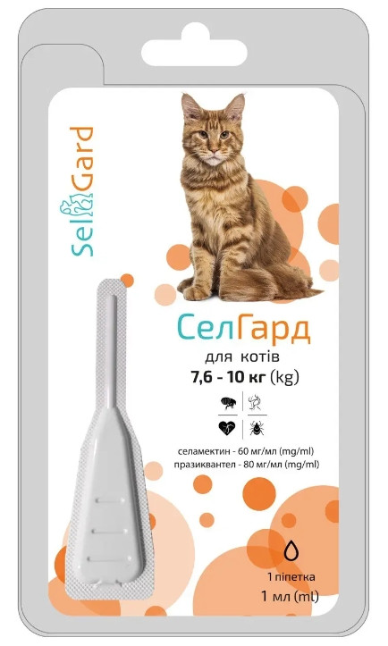 СелГард (SelGard) краплі від бліх кліщів і гельмінтів для кішок