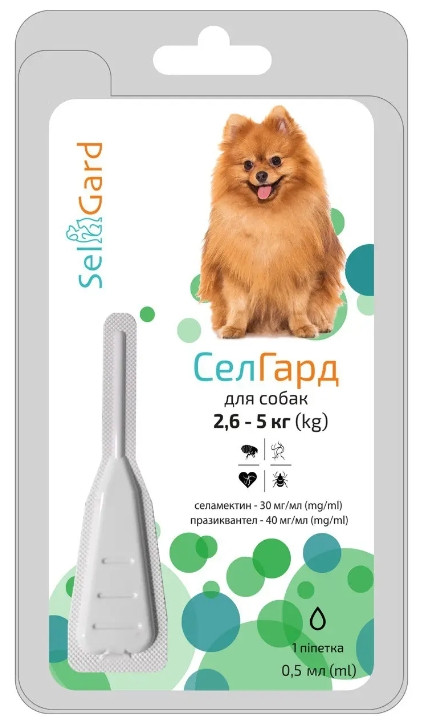 СелГард (SelGard) краплі від бліх кліщів і гельмінтів для собак вагою 2,6 - 5 кг 1 піпетка