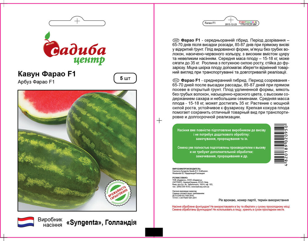 Насіння кавуна Фарао F1 (Syngenta/САДИБА ЦЕНТР) 5 семе — (68 дн), подовженої ф-ми, СОЛОДКИЙ! вага 15-18, до 35 кг
