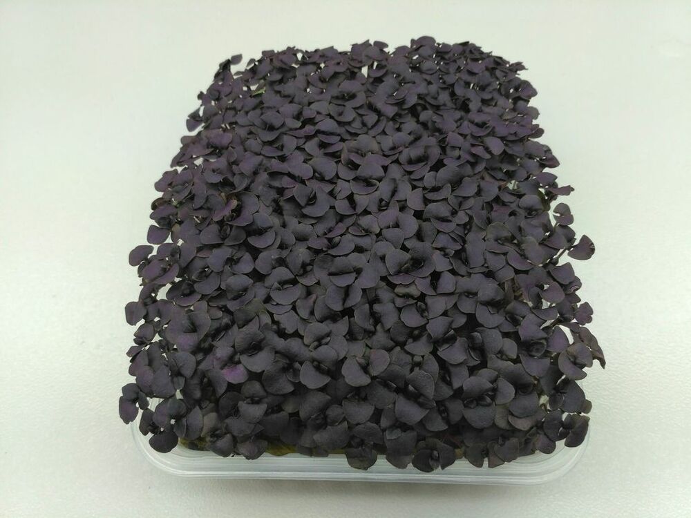 Микрозелень "Базилик Фиолетовый" с приятным ароматом и слегка жгучим вкусом отлично сочетаются со всеми овощными, мясными, рыбными блюдами. Станут отличной добавкой к супам, творогу, омлетам и особенно к салатам. Содержат сахара, каротин, витамины С, В2, РР, эфирные масла. Стимулирует пищеварение. Микро базилик обладает теми же качествами, как и зрелые растения. Он прекрасно подходит для приготовления пасты и соуса песто. Как вырастить микрозелень – пошаговая инструкция Замочите семена выбранной вами культуры в воде на несколько часов, чтобы они набухли и впоследствии лучше и быстрее проросли. Достаточно взять пластиковый стаканчик, поместить туда семена (в нашем случае дайкона) и залить водой. Возьмите нижнюю часть контейнера для проращивания зелени и наполните его водой. От поверхности воды до краев емкости должно оставаться свободное пространство, равное 1см. Накройте контейнер верхней частью – пластиковой сеточкой, разделенной на несколько секций. Контейнеры, предназначенные для проращивания сразу нескольких культур, могут быть разделены на секции с разным диаметром отверстий в сетке. Равномерно распределите семена выбранной культуры по решетке. Опрыскайте семена из пульверизатора, чтобы дополнительно увлажнить их, и поставьте в теплое и светлое место. Когда сеянцы прорастут настолько, что их корешки застрянут в сетке, начните споласкивать зелень под проточной водой. Делать это нужно 2-3 раза в день. После споласкивания не забудьте снова наполнить контейнер водой, чтобы корни растений доставали до влаги. Соберите урожай молодой зелени. В зависимости от скорости роста культуры, микрозелень готова к употреблению на 5-10 день. Обычно ростки собирают, когда сеянцы вырастают до 4-7см в высоту.