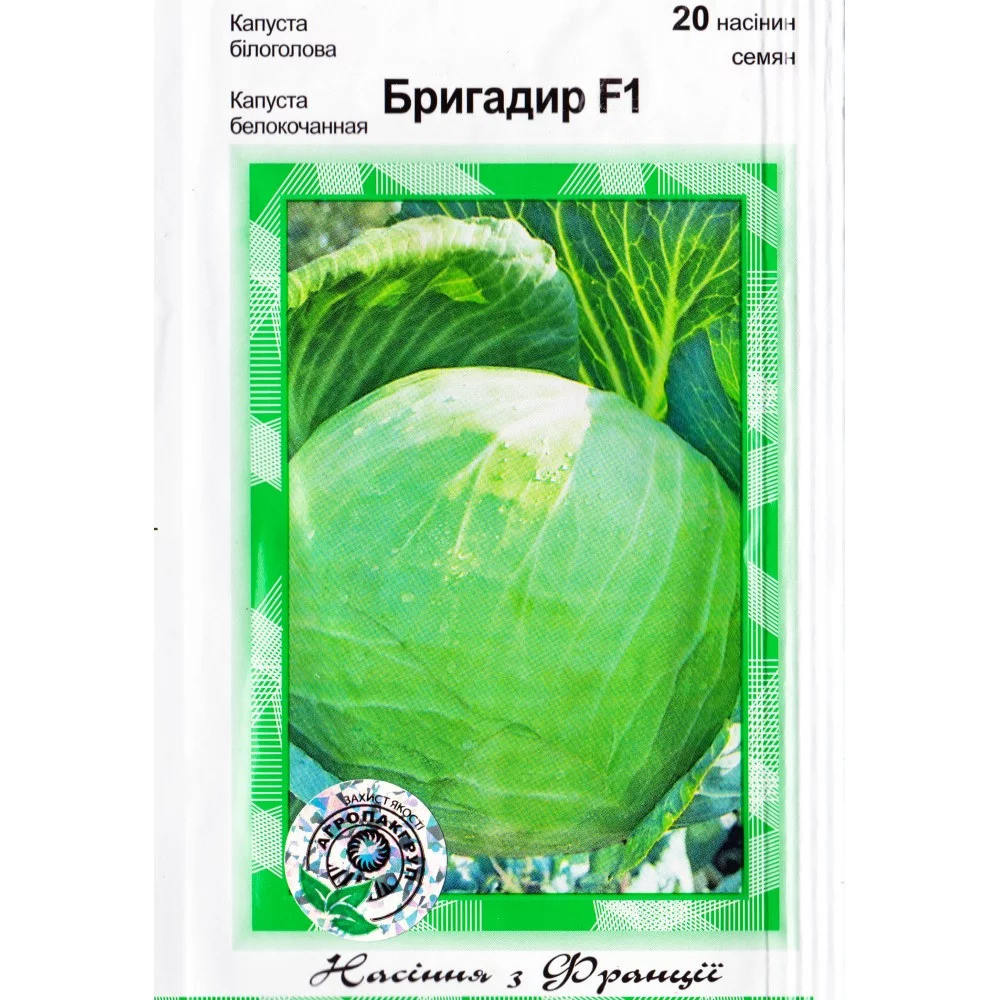 Насіння капусти Бригадир F1, 20 насінин — середньо-пізня (110-120 днів), білоголова