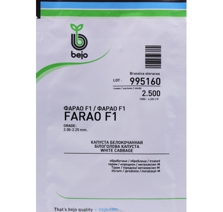 Насіння капусти Фарао F1 (Бейо/Bejo) 2500 насіння — рання (65 днів), білокочана, фасовка 2021 рік , УЦІНКА