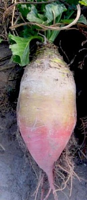 Высокоурожайный среднеспелый сорт. Вегитационный период от всходов до сбора урожая 130-145 дней. Корнеплод крупный, длиной 15-20см, диаметром 8-12см, цилиндрической формы, светло-розового цвета, весом 1-2кг. Погружен в почву на 50%, благодаря чему легко выдергивается из земли. Мякоть белая и сочная. Сорт холодостойкий, не требователен к плодородию почвы, устойчив к болезням и цветушности.