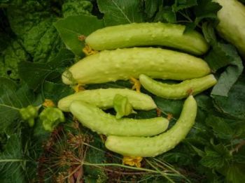 Оригинальный сорт китайской селекции с экзотической окраской плодов. Раннеспелый, высокоурожайный, прекрасно растет как в плёночной теплице, так и в открытом грунте. Растения сильнорослые, с преимущественно женским типом цветения. Плоды длиной 12 - 15 см, удлененно - конической формы, бугорчатые, с очень нежной кожицей, вкусные. Рекомендуется для употребления в свежем и консервированном виде. Сорт засухо - и морозоустойчивый, устойчив к болезням.
