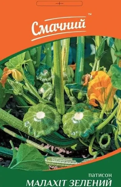 Патіссон "Малахіт" - це ранньостиглий сорт, до технічної стиглості 35 днів. Стійкий до хвороб. Кущові рослини. Невимогливі до вологи. Плоди тарілчастої форми, зелені. Для споживання використовують молоду зав'язь 5-7 сантиметрів у діаметрі.
