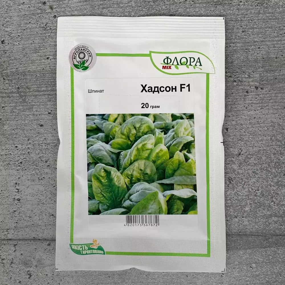 Шпинат "Хадсон" F1: -пластичний гібрид шпинату з швидким темпом зростання, -ранній 37-40 днів, - стійкий до цвітіння, -красивого зеленого кольору, -листя товсті, вирівняні за розміром, подовженої форми. Посів проводять з початку лютого до кінця березня і з початку серпня до першої половини жовтня. Стійкий до несправжньої борошнистої роси, стрілкування і низьких температур.