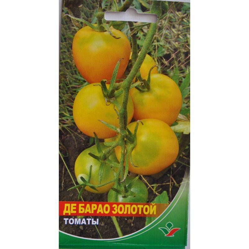 Золотий томат Де барао - це індетермінатний томат від компанії Елітний ряд. Просте суцвіття формується над 9 - 11 листом, подальші через 3 листа. Суцвіття компактне простого типу, з 5 - 7 плодами, овально -яйцевидної форми масою 60 -70 грам. Незрілий плід зеленого кольору, при дозріванні золотисто жовтого кольору. Плоди мають щільну консистенцію м'якоті, гарні для консервації, можуть використовуватися і в свіжому вигляді. Довго зберігаються без зміни. Плоди відрізняються підвищеним вмістом В - каротину. Особливості агротехніки: висаджувати не більше 2,5 рослин на 1 кв.м., підживлення мінеральними добривами.