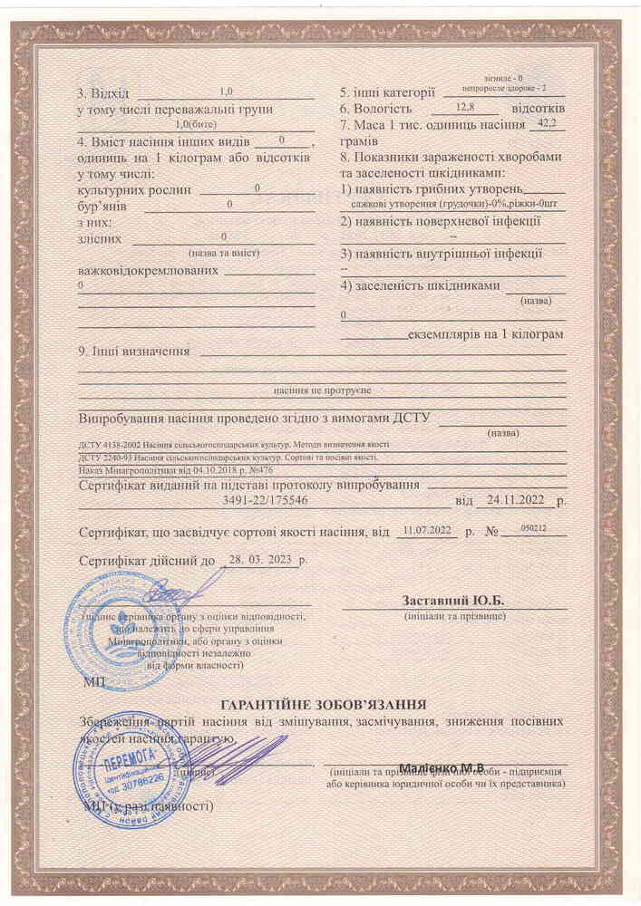 Рекомендована норма висіву 3,5-4 млн. схожих зерен на га. Сорт відгукується на азотне живлення. Бажано під передпосівну культивацію давати аміачну селітру в межах 150-200 кг в фізичній вазі. При формуванні другого міжвузля треба застосувати регулятор росту Церон.