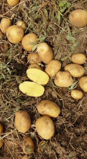 клубни с неглубокими глазками и жёлтой мякотью. Новый сорт в